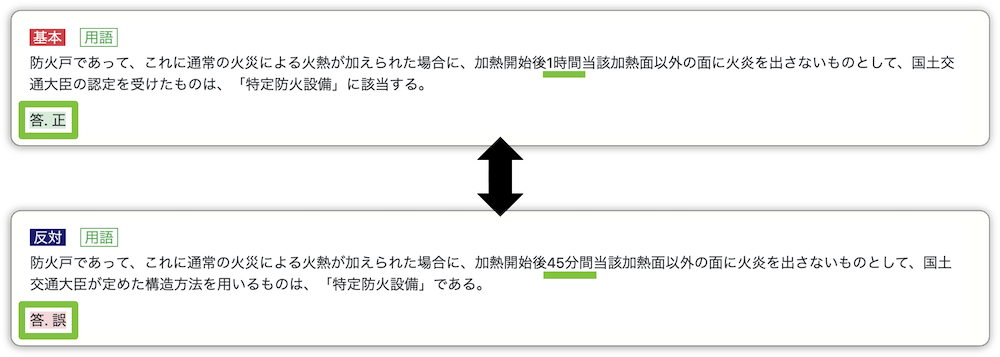 特に今までの過去問の特徴から、過去に出題された問題の正誤が反対になった問題がよく出題されます。